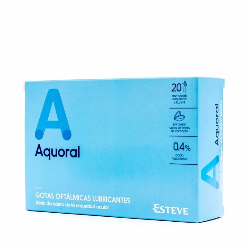 Aquoral Gotas Oftálmicas Lubricantes 20 ud es una solución de ácido hialurónico de alto peso molecular obtenida por síntesis biotecnológica.