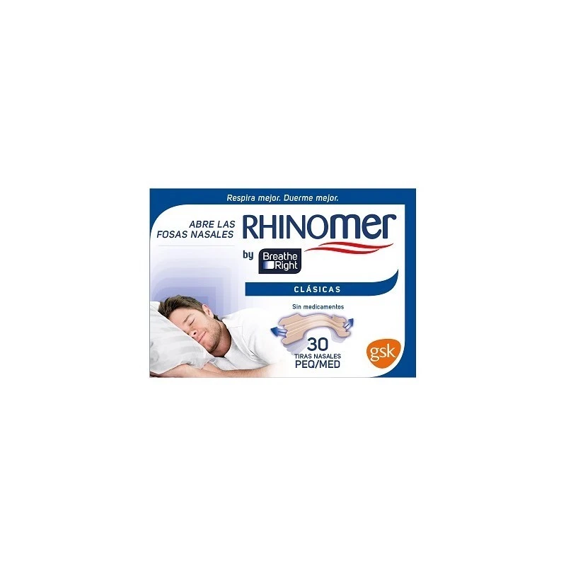 Las tiras nasales Rhinomer by Breathe Right no contienen medicamentos y está clínicamente probado que abren las fosas nasales instantáneamente facilitando la respiración. Las tiras Rhinomer by Breathe Right están compuestas por dos bandas plásticas flexibles patentadas. El adhesivo especial permite que la tira se ajuste cómodamente sobre las aletas de la nariz y su acción de flexión permite que las bandas plásticas eleven las fosas nasales abriendo y manteniendo los canales abiertos. Las tiras Rhinomer by Breathe Right pueden ser usadas de día o de noche para el alivio de la congestión nasal causada por los ronquidos, alergias, constipados o tabique nasal desviado. No deben ser utilizadas más de 12 horas por día.