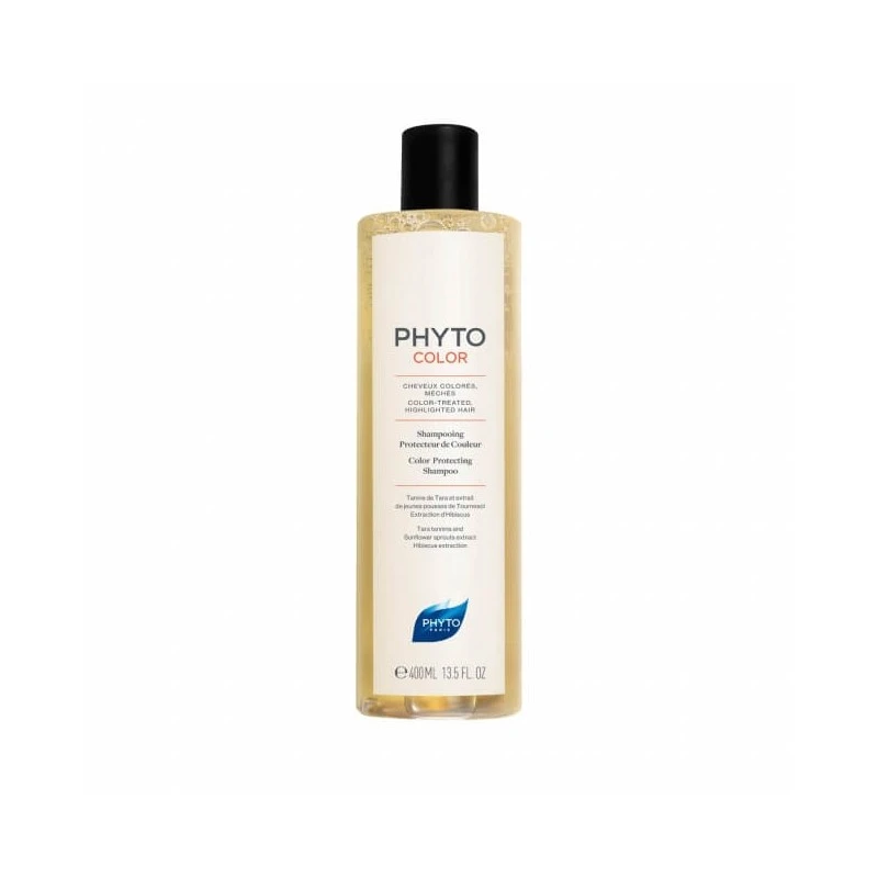 Formulado para cabellos teñidos y/o con mechas, el champú Phytocolor limpia suavemente, protege el color y reaviva la luminosidad del cabello dejándolo limpio y suave. En su formulación podemos encontrar Taninos Tara y Extracto De Brotes De Girasol: Este dúo de ingredientes activos han sido seleccionados por su excepcional acción protectora. Un potente antioxidante, que limita la degradación de los pigmentos, evita que los iones de cobre presentes en algunas aguas se fijen sobre la fibra para preservar el color de la decoloración. Y el extracto de Hibiscus: tiene un contenido de ácido orgánico muy alto, su extracto neutraliza la alcalinidad de los tratamientos de color y suaviza las escalas de la fibra para hacer que el cabello brille. Su alto contenido de mucílago también le confiere sus propiedades hidratantes y emolientes.