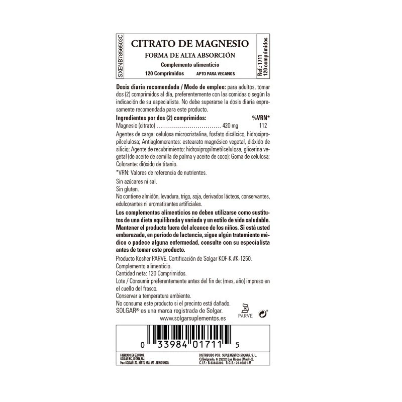- Solgar Citrato de Magnesio es una fuente de alta potencia del mineral magnesio en forma altamente absorbible.