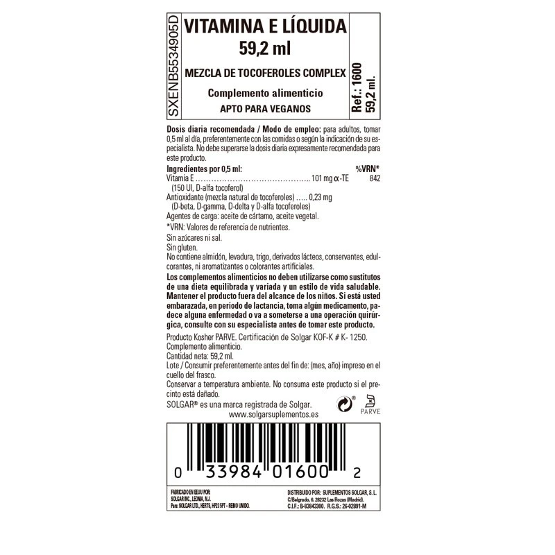 Composición / Principios activos de Solgar Vitamina E Líquida