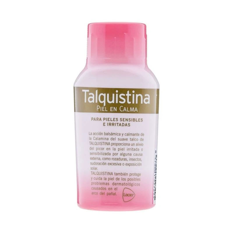 La acción balsámica y calmante de la Calamina del suave talco de Talquistina proporciona un alivio del picor en la piel irritada o sensibilizada por alguna causa externa. El suave talco de Talquistina actúa eficazmente en irritaciones y picores causados por el sudor. Se adhiere fácilmente a la piel, absorbe la humedad, tacto muy agradable, característico olor de Talquistina. Producto testado bajo control dermatológico